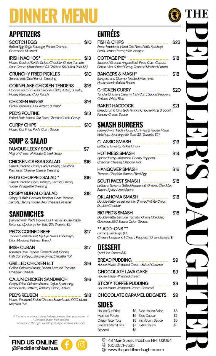 Fresh haddock, hand cut fries, ped's ketchup, ped's lemon tartar, malt vinegar